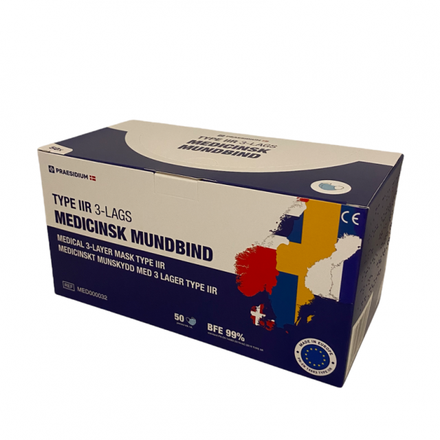 Comfortabel chirurgisch mondneusmasker type IIR, met oorlussen en neusstrip. Kleur blauw (buitenzijde) en wit (binnenzijde). Beschermt neus- en mondslijmvliezen van de drager tegen spatten van bloed of druppels slijm of spuug die bij praten of hoesten door anderen door de lucht verspreid worden. Daarnaast filtert het masker wat je uitademt, zodat je je omgeving beschermt tegen een eventuele besmetting. Type IIR mondneusmaskers beschermen dus jezelf én je omgeving. Dit verschilt met een ander type II mondmasker dat alleen filtert wat je uitademt of een zelfgemaakt masker dat er alleen voor zorgt dat je geen grote druppels kunt verspreiden als je hoest of praat. Dit masker is geschikt en toegestaan om veilig te reizen in het OV.