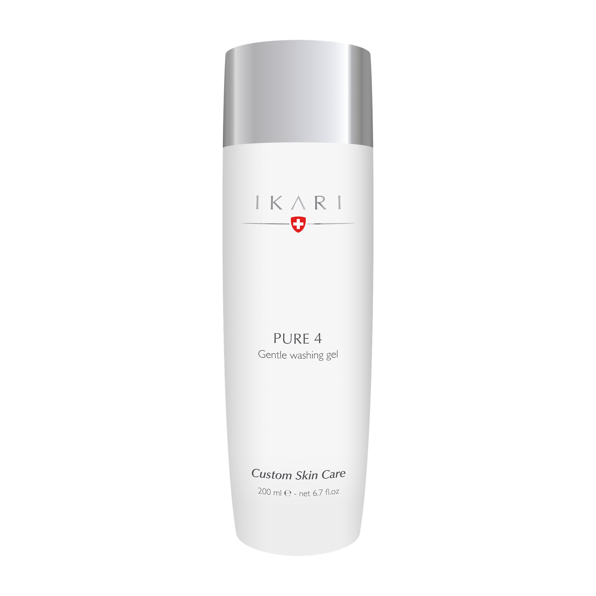 Ikari Pure 4 Gentle washing gel. PURE 4 is een zachte reinigende wasgel, ideaal voor de gemengde en vette huid. Deze gel is natuurlijk geparfumeerd, schuimt zeer licht, en is zeer geschikt voor een gevoelige huid. PURE 4 is makkelijk in het gebruik.