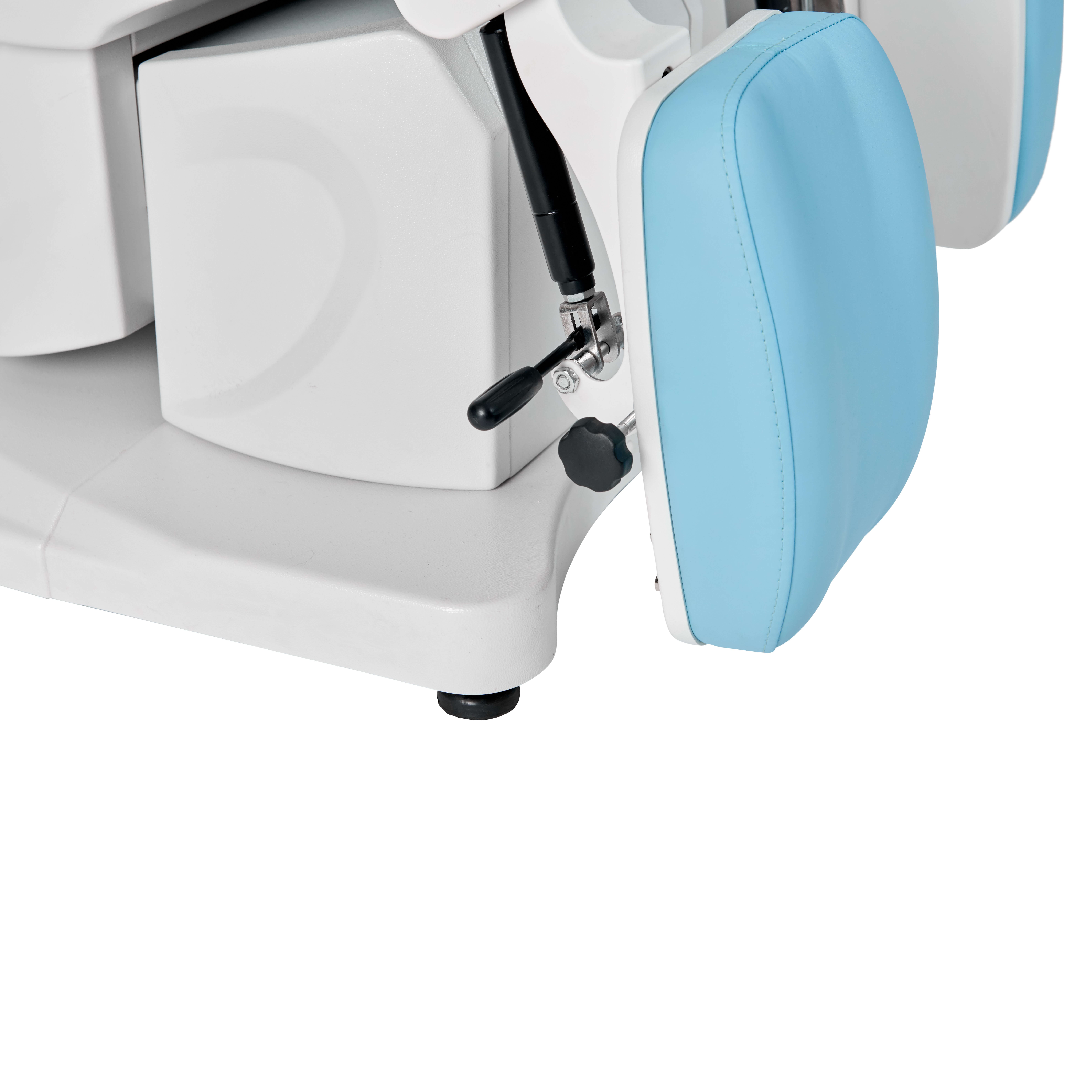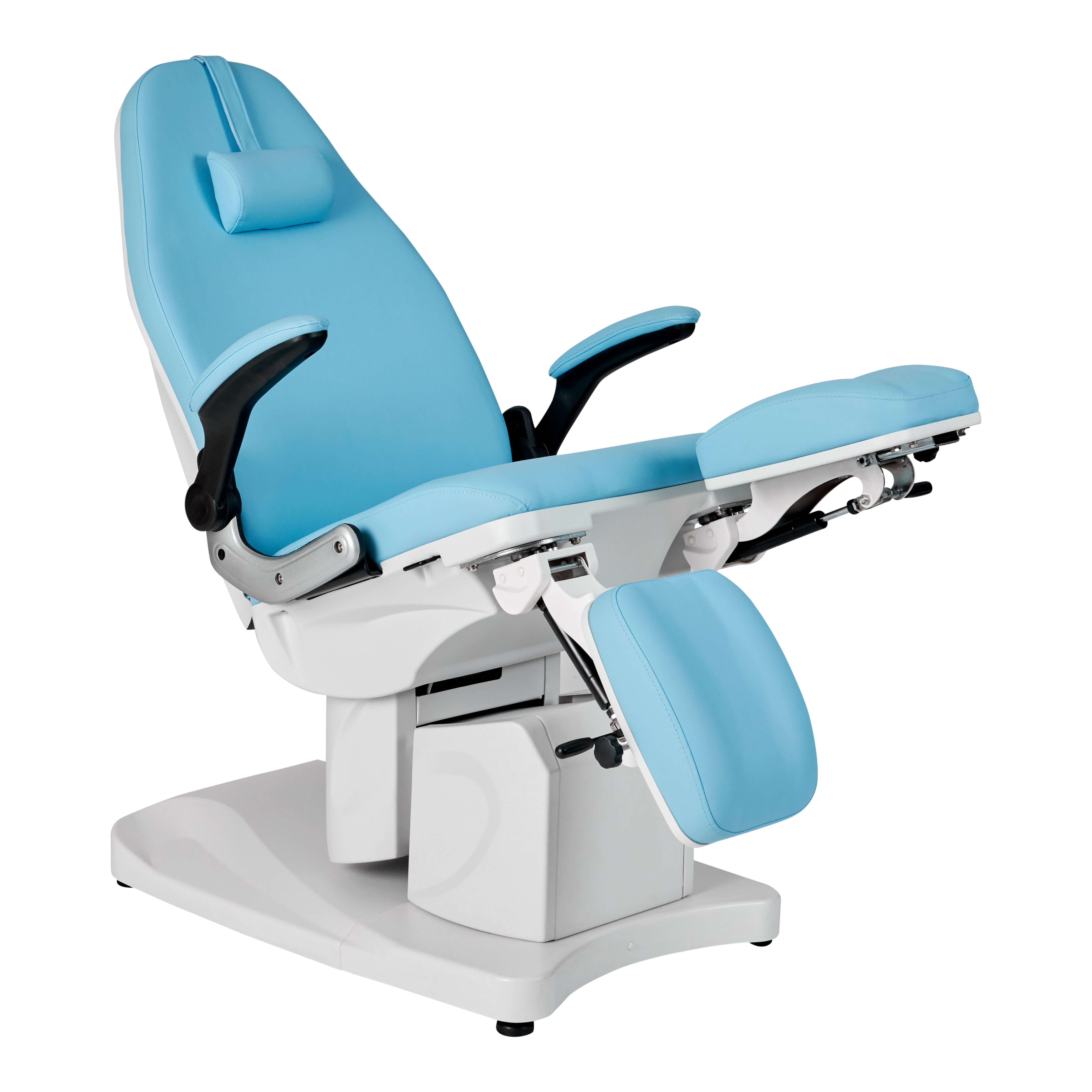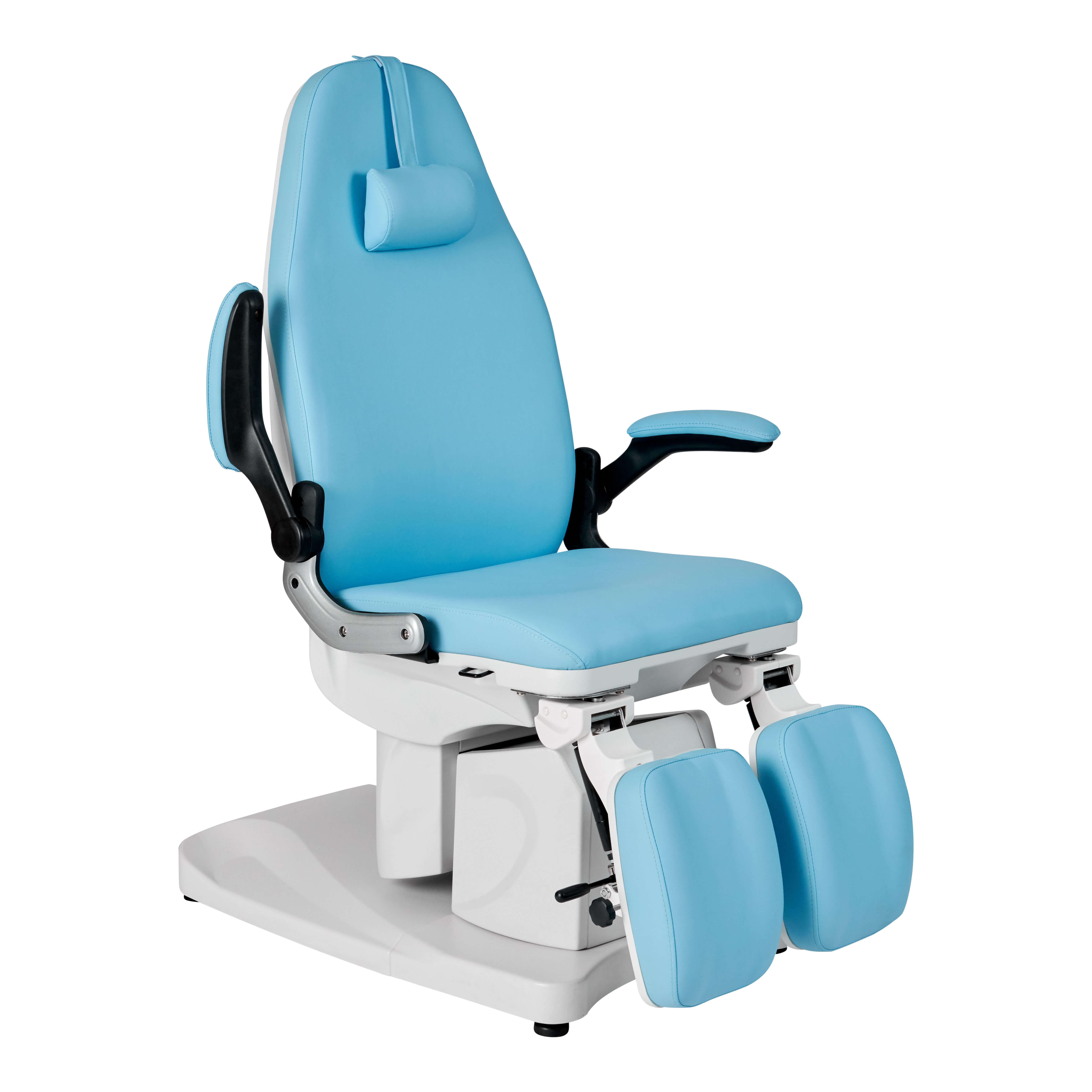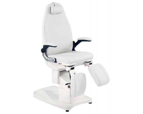 Pedicure behandelstoel podo Deneb. Moderne pedicure behandelstoel die tijdens de behandeling comfort biedt, niet alleen voor patiënten maar ook voor de behandelaar zelf. Uitgerust met 3 elektromotoren voor snel en gemakkelijk afstellen van de behandelstoel. De behandelstoel is zeer robuust en stabiel. Ook geschikt voor langdurige behandelstoel of met gebruik van een spa of voetenbad. De voetensteunen zijn handmatig in de stellen naar uw eigen voorkeur. Bekleding met PU-leer. Samengevat een modern ontwerp en functionaliteit in één. Opties: