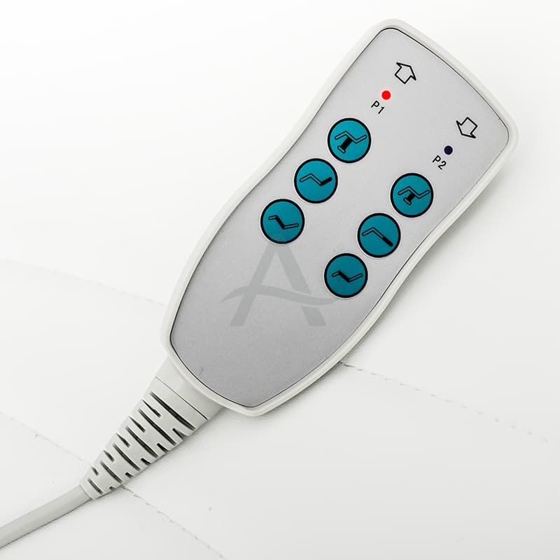 Deze behandelstoel valt op door zijn deelbare beensteunen. Erg populair dus bij Pedicure's / Podologen.