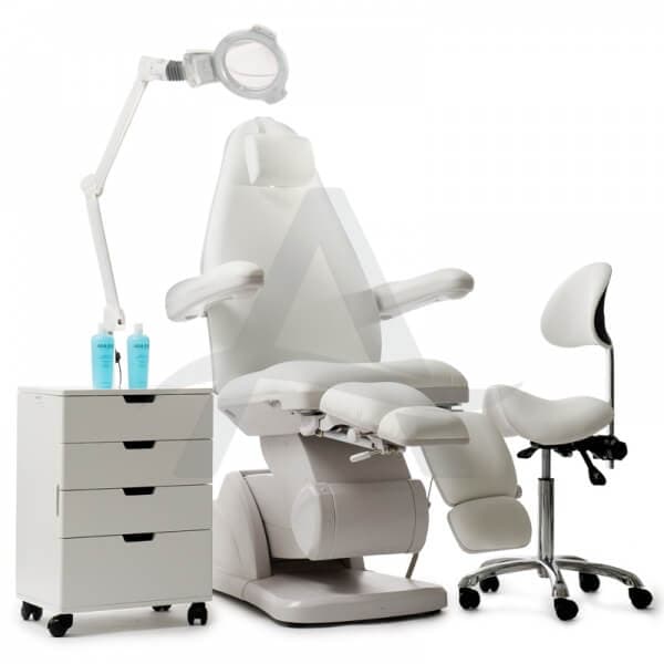 Deze behandelstoel is speciaal ontwikkeld voor de professionele schoonheidsspecialist en pedicure praktijk. De basisprijs is voor de uitvoering in wit. Tegen een meerprijs kun je ook voor een stoel in kleur kiezen.
