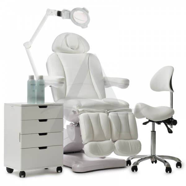 Deze behandelstoel is speciaal ontwikkeld voor de professionele schoonheidsspecialist en pedicure praktijk. De basisprijs is voor de uitvoering in wit. Tegen een meerprijs kun je ook voor een stoel in kleur kiezen.
