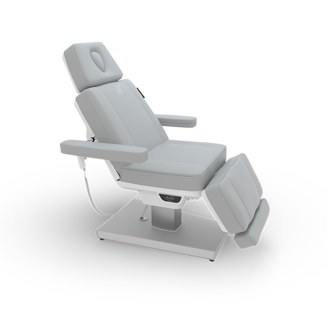 De aluminium voet maakt het mogelijk om verticaal omhoog en omlaag te gaan, hierdoor neemt de behandelstoel minder ruimte in dan vergelijkbare behandelstoelen met een hefboomsysteem. De behandelstoel is uitermate geschikt voor schoonheid- pedicure en lichaamsbehandelingen.