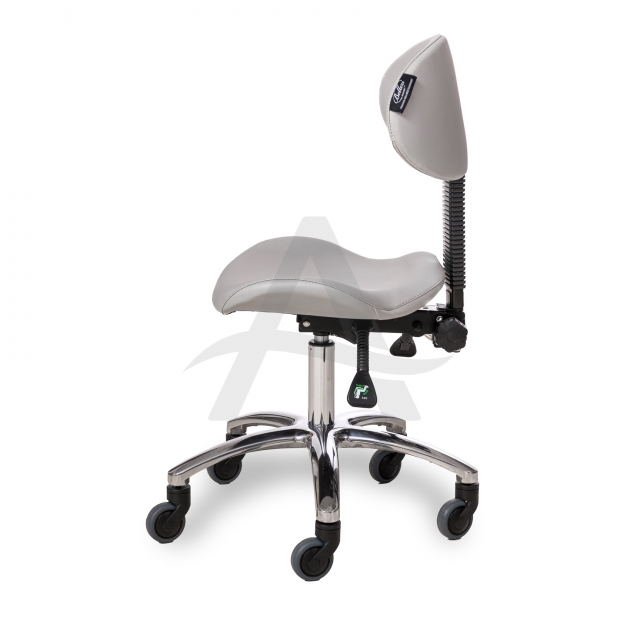 De Torres Comfort is voorzien van een comfortabele platte zitting en rugleuning. Zowel de hoogte als de rugleuning is verstelbaar. Hierdoor en door de kiepfunctie kan de tabouret in iedere gewenst positie worden gezet.