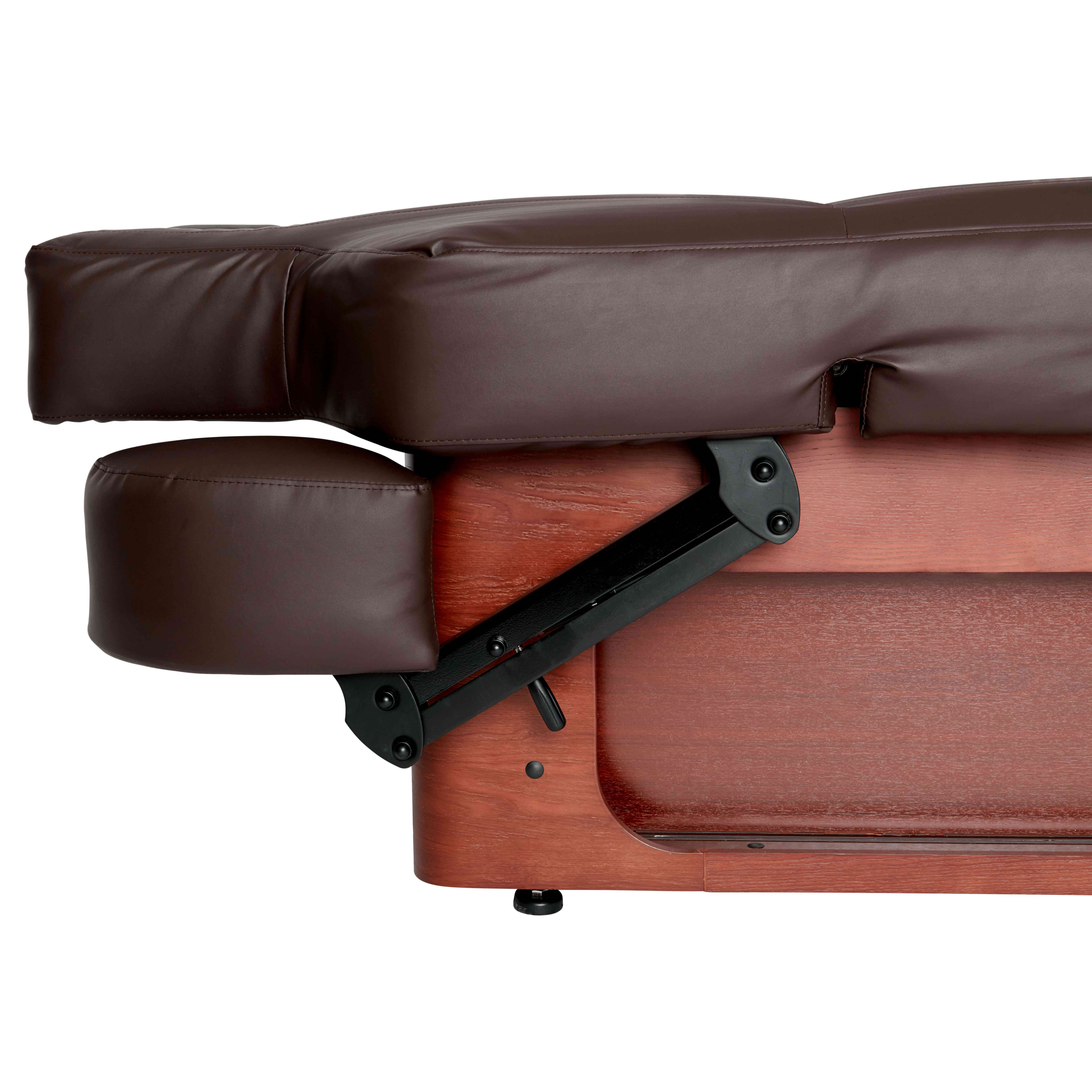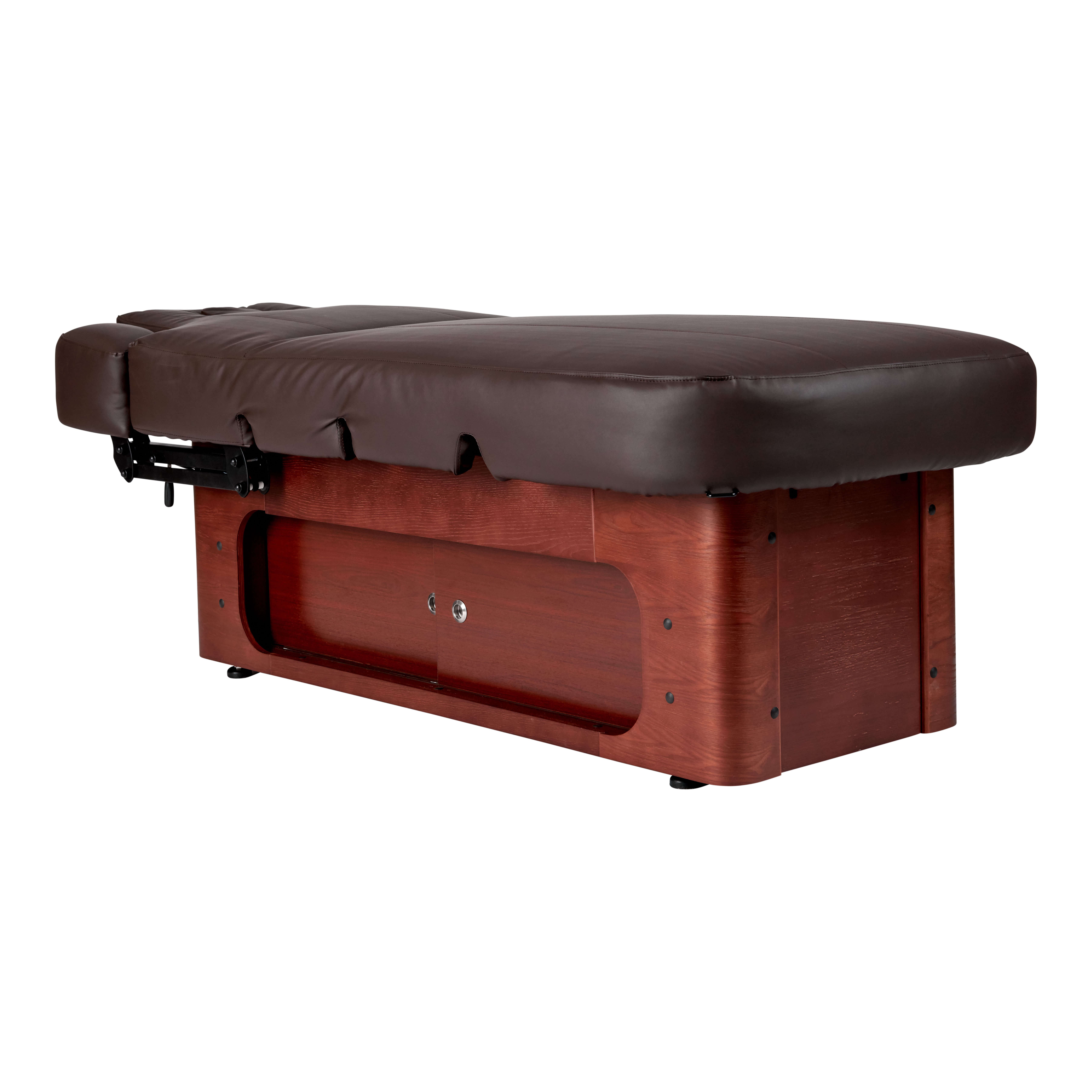 Behandeltafel wellness keid. Zeer luxe spa bed voor in uw instituut. Prachtig afgewerkt met hout en verstelbare armleuningen, volledig elektronisch met 4 motoren.