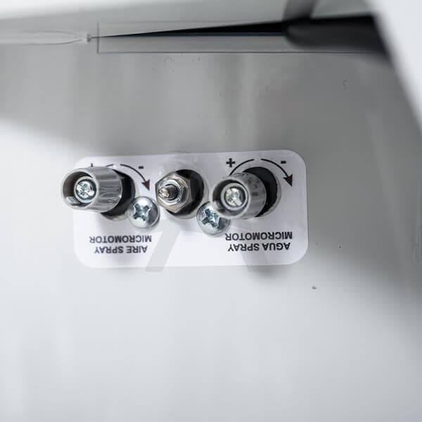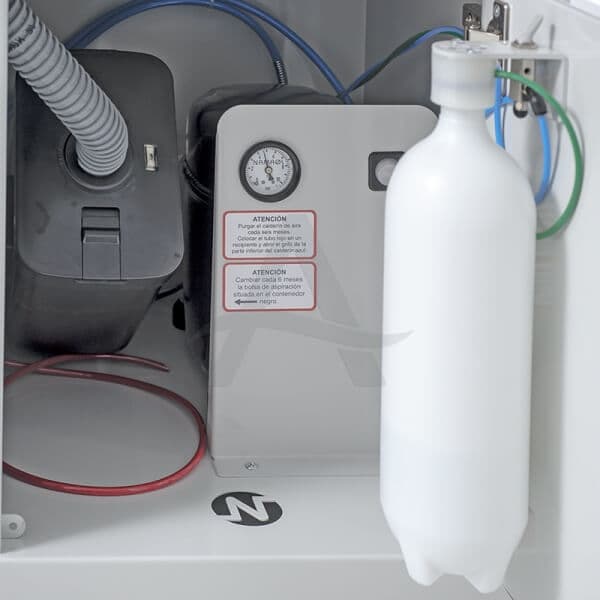 Simpel, de kast (unit) is uit één stuk vervaardigd. Waar anderen de kast opbouwen uit losse panelen en aan elkaar bevestigen. De compressor kan op deze manier ook na tien (10) jaar nog altijd geruisloos functioneren. Er zal nimmer iets (los) trillen! In combinatie met NSK handstukken, motoren en boorslangen ontstaat er een eerste klas kwaliteit.