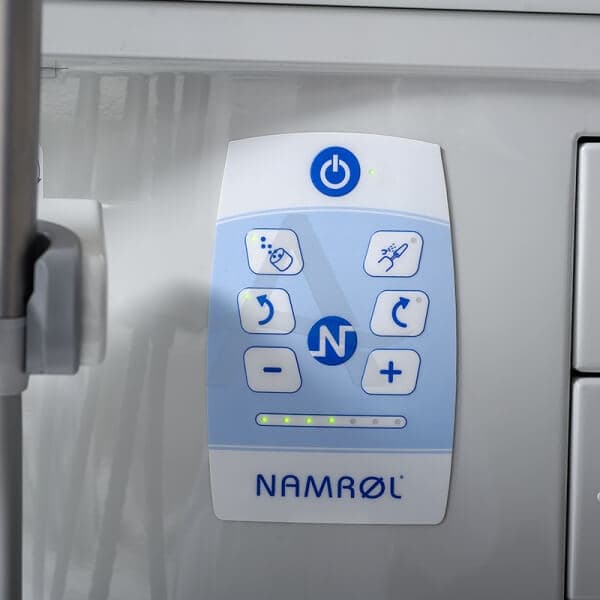 De Namrol stylo podologie unit is uiteraard computergestuurd, dus digitaal bedienbaar. De instrumenten zijn via een ergonomische beugel bevestigd aan een degelijke, extern geplaatste, houder.