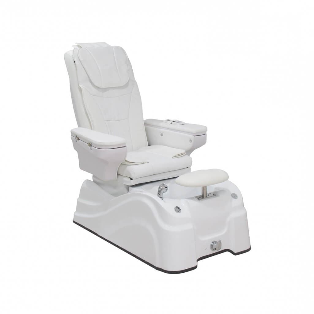 Spa pedicure behandelstoel met massage. Standaard in kleur wit of zwart. Tegen meerprijs in iedere kleur leverbaar (+685 EUR ). Zetel is comfortabel en elegant en voorzien van hoogwaardige PU bekleding. De Spa pedicurestoel is uitgerust met 2 electro motoren die hoogte, kanteling en voor- achterwaarts bewegen bedienen. De verstelbare armleuningen zorgen voor eenvoudige in- en uitstap. Tevens zijn de armleuningen voorzien van geïntegreerde manicurebakjes. Er is Shiatsu massage in de rugleuning voorzien en luchtdrukmassage in de zitting (cervicaal, dorsaal + lumbaal) zorgen voor een goede ontspanningservaring. Aan de voorkant voorzien van een massage Spa pedicure jacuzzi voetbad met uittrekbare douche en in hoogte verstelbare voetsteun. Inclusief MP3 speler met USB- en SD-kaart connectie.