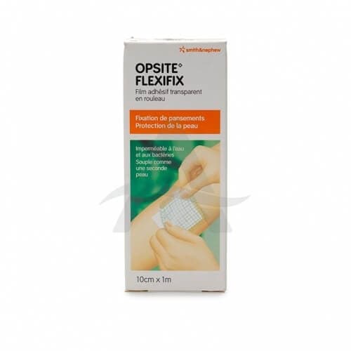 Opsite Flexifix is een zelfklevende transparante film op rol. Is aangewezen voor : fixatie van kompressen bescherming van de huid tegen wrijving Producent: Smith & Nephew.