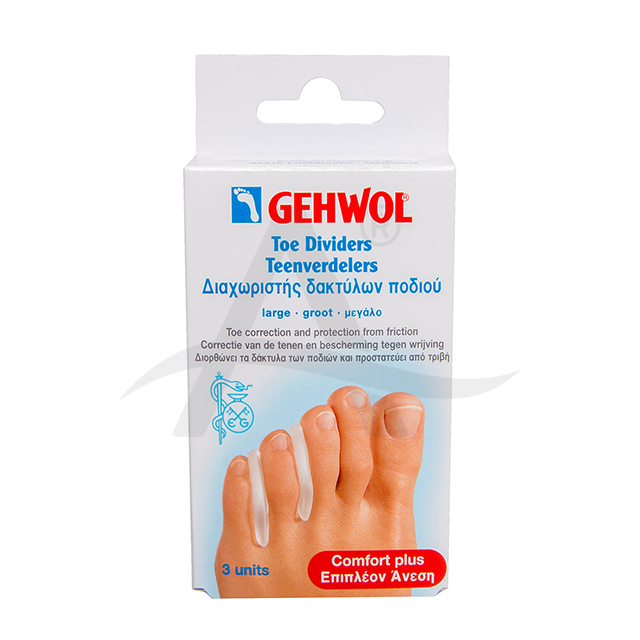 Zachte bescherming bij dicht tegen elkaar aanliggende tenen. Voorkomt openschuren en wrijvingen. Verlichting van eksterogen tussen de tenen.