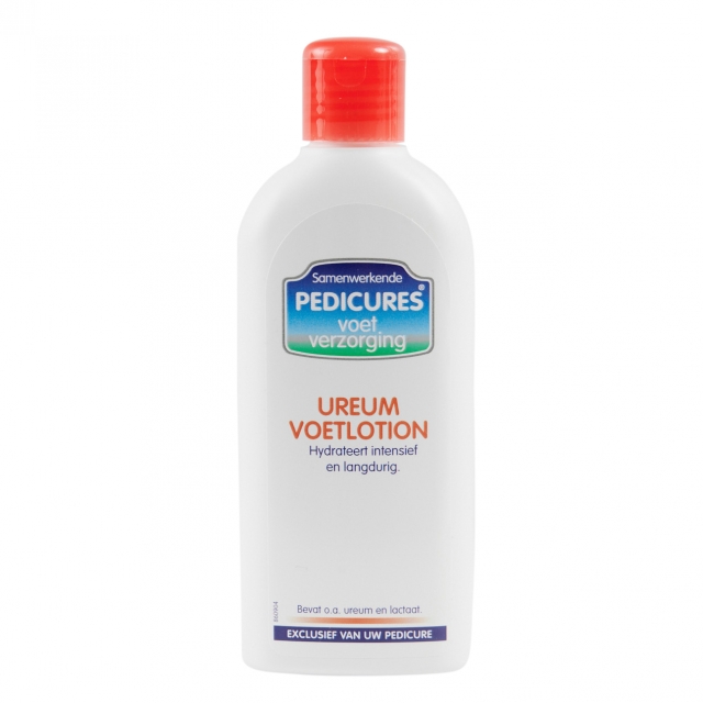 Nieuw! Samenwerkende pedicures ureum voetlotion. Exclusief voor de pedicure! Deze snel intrekkende olie in water emulsie voor zeer droge en diabetische voeten. Beschermt de huid en voorkomt vochtverlies. De conditie van de huid wordt merkbaar beter. De huid voelt zachter en soepeler aan. De voet lotion hydrateert intensief en vermindert o.a. jeuk, eelt en kloven. De voetlotion bevat 10% urea. Beschikbaar in 150ml.