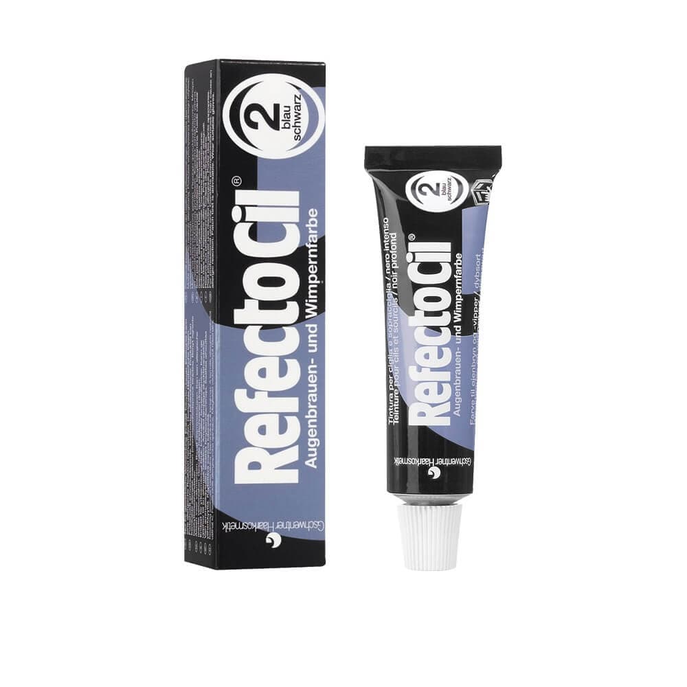 Refectocil wimperverf blauw-zwart 2. De blauwe glans zorgt voor extra kleurdiepte op de wimpers. TIP! Gebruik RefectoCil Blauw-Zwart nr. 2 op de wimpers om de volledige lengte van de wimpers te accentueren met een intense kleur. Mengverhouding: 2 cm verf : 10 druppels oxidant.